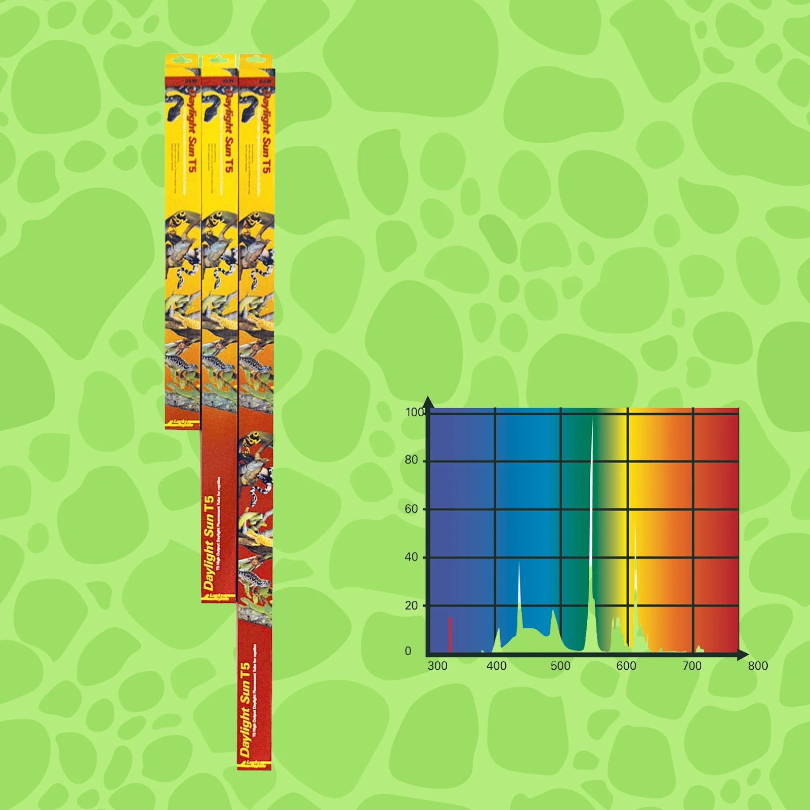 Die Daylight Sun T5 ist eine Leuchtstoffröhre, die speziell für die Ausleuchtung von Terrarien entwickelt wurde. Auf UV-Strahlung wurde bewusst verzichtet, stattdessen wurde die Röhre auf höchste Lichtleistung ausgelegt. Für tagaktive Reptilien ist eine hohe Lichtintensität und ein sonnenlichtähnliches Spektrum wichtig. Die Daylight Sun T5 erzielt eine um 40% höhere Lichtintensität als vergleichbare T8-Leuchtstoffröhren. Außerdem können von den schlanken T5-Röhren mehr Röhren auf der gleichen Fläche installiert werden. So wir die Lichtausbeute maximiert. Für Bartagamen und andere sonnenliebende Echsen kann es einfach nicht hell genug sein. Die Daylight Sun T5 hat ein besonders sonnenähnliches Biolichtspektrum, das bestmögliche Lichtqualität und Wohlbefinden garantiert. Sie ist damit ideal für alle Reptilien und auch das Pflanzenwachstum und sorgt für ein ausgewogenes Licht mit satten Farben. Als Grundbeleuchtung sollte die Daylight Sun in keinem Terrarium fehlen.